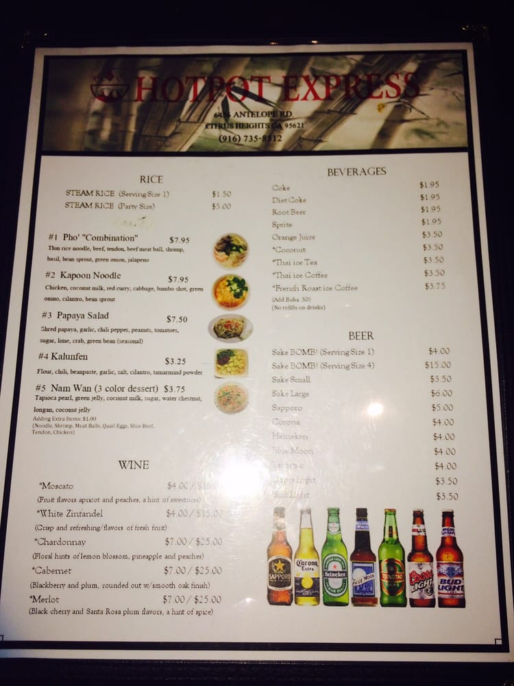 Hotpot Express is a Thai restaurant located in Citrus Heights, CA. This casual dining spot offers a wide range of options for both meat lovers and vegetarians. Customers rave about the boat noodle broth and the variety of noodles, vegetables, meats, and seafood available. The service is exceptional, with friendly owners who go above and beyond to ensure a pleasant dining experience. The papaya salad and hotpot dishes are highly recommended by patrons. The ambiance is clean and pleasant, making it a great place for lunch or dinner. Overall, Hotpot Express provides an amazing dining experience with delicious food, excellent service, and a welcoming atmosphere.